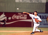 訳の分からない内に、試合は始まった。先頭打者にいきなりヒットを打たれたが、初回は難なく抑える事ができた。2回以降は味方の守備にも引っ張られ、あまり自分のペースで投げることは難しかった。その上3回裏の味方攻撃中、今度は停電になると言うアクシデントにより20分間ぐらい中断してしまった。完全に自分のペースは崩れてしまった。何とか集中してマウンドに上がったが、1点取られてしまった。しかし言い訳は通用しない。結果がすべてである事は分かっている。どんな事が起こっても、それに対応していくしかないんだ。とはいえ、投球内容は合格点までいかないにしても、4回1失点は上々だろう。本当は5回か6回投げればよかったのかもしれないが、初回はこれぐらいの方が良かったのかもしれない。しかし、4回は残念だった。1死3塁で三振を取った時は球場全体が盛り上がったので、次の打者に打たれたのはファンに対して申し訳なかった。自分の中では、充分盛り上がっていたんだけどなぁ〜 |