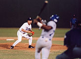 さっそく、リリーフの出番が回ってきた。4回表2アウト ランナー1塁、カウント2−2という場面。味方ピッチャーのマメが潰れたということで、急遽マウンドへ上がった。順調に仕上がってきている筈の肩の調子が悪く、ストレートの走りが悪く最悪。1人マウンドで頭にきていた。それでも逃げることは当然できず、投げるしかなかった。